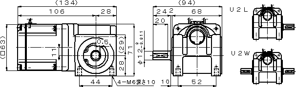 | H3F形平歯車減速器付 | C形ウォーム減速器付 | D2形ウォーム減速器付 | T形ウォーム減速器付 | U2形ウォーム減速器付 |